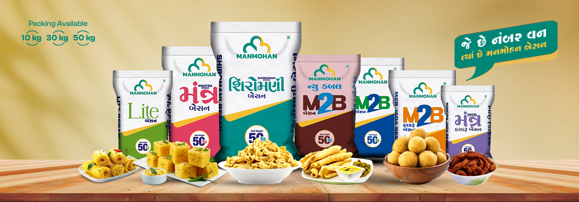 Since 2019, Manmohan Besan Mill has been a name synonymous with premium quality besan. We are passionate about crafting besan that not only meets but exceeds expectations β for farsan makers, namkeen manufacturers, home kitchens, and global food brands. From Gujarat to across India and the world, we bring you besan that transforms every dish β delivering superior taste, perfect texture, and consistent results every time.